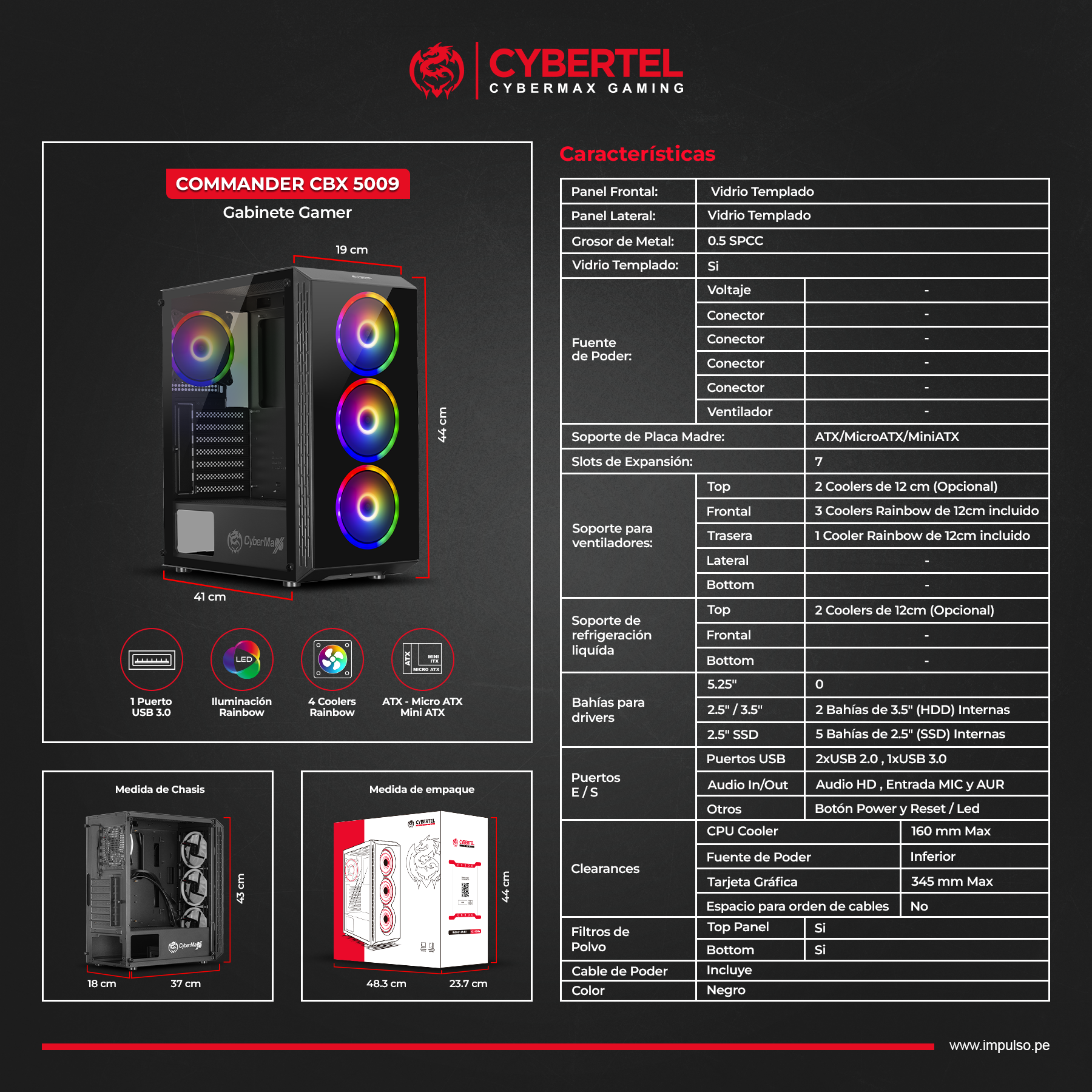 * Frontal: 3 Coolers Rainbow de 12cm incluido.